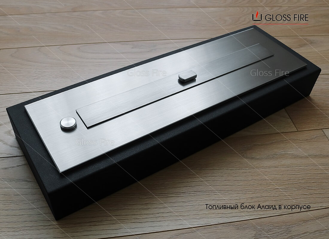 Очаг – это емкость куда заливается жидкое топливо. Емкость внутри заполняется керамическим материалом, который впитывает биотопливо, и в случае опрокидывания камина топливо не разливается. За счет этого конструкция стала полностью пожаробезопасной. Очаг встраивается в корпус из стали, который окрашивается специальной термостойкой краской, или же в заранее подготовленную нишу, изготовленную из негорючих материалов.
