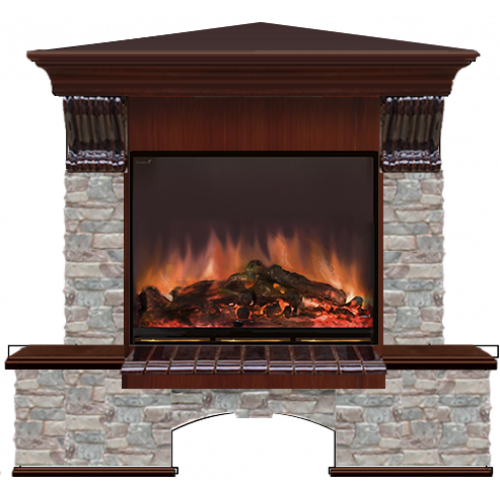 Каминокомплект Glenrich Бостон Грот цветной угловой (красное дерево)+Arte 23