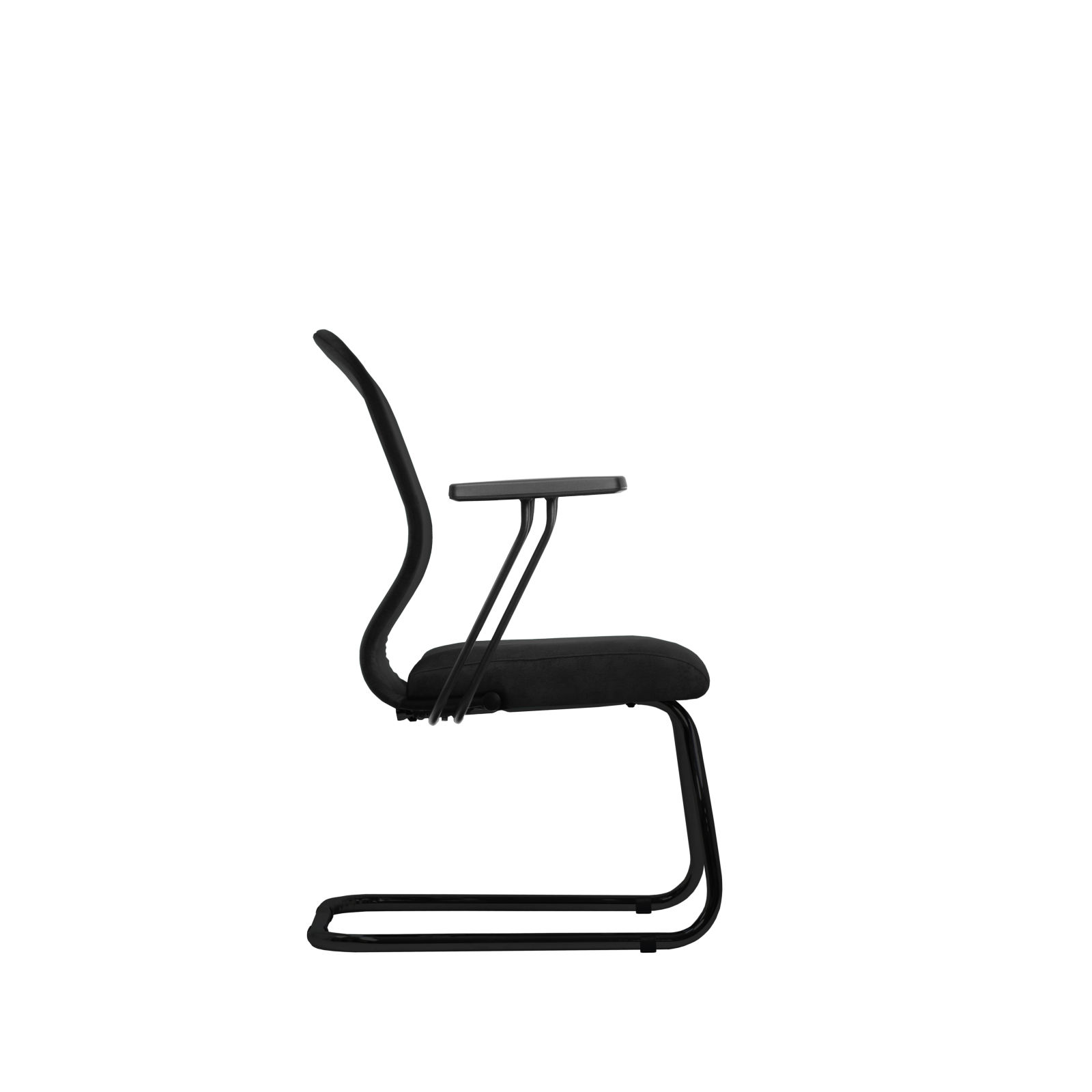 • Основание "Полозья" - цельная сверхпрочная стальная конструкция, обеспечивающая дополнительную устойчивость и защиту от опрокидывания кресла с полиамидными накладками, защищающими напольное покрытие. Покрытие полозий - износостойкое полимерное покрытие черного цвета;