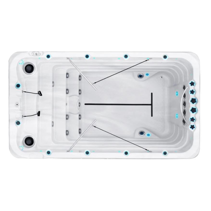 - Мощная система противотока SwimJet™ 2.0: Двойной двигатель создает сильный и равномерный поток для плавания на месте, бега в воде и функциональных тренировок.